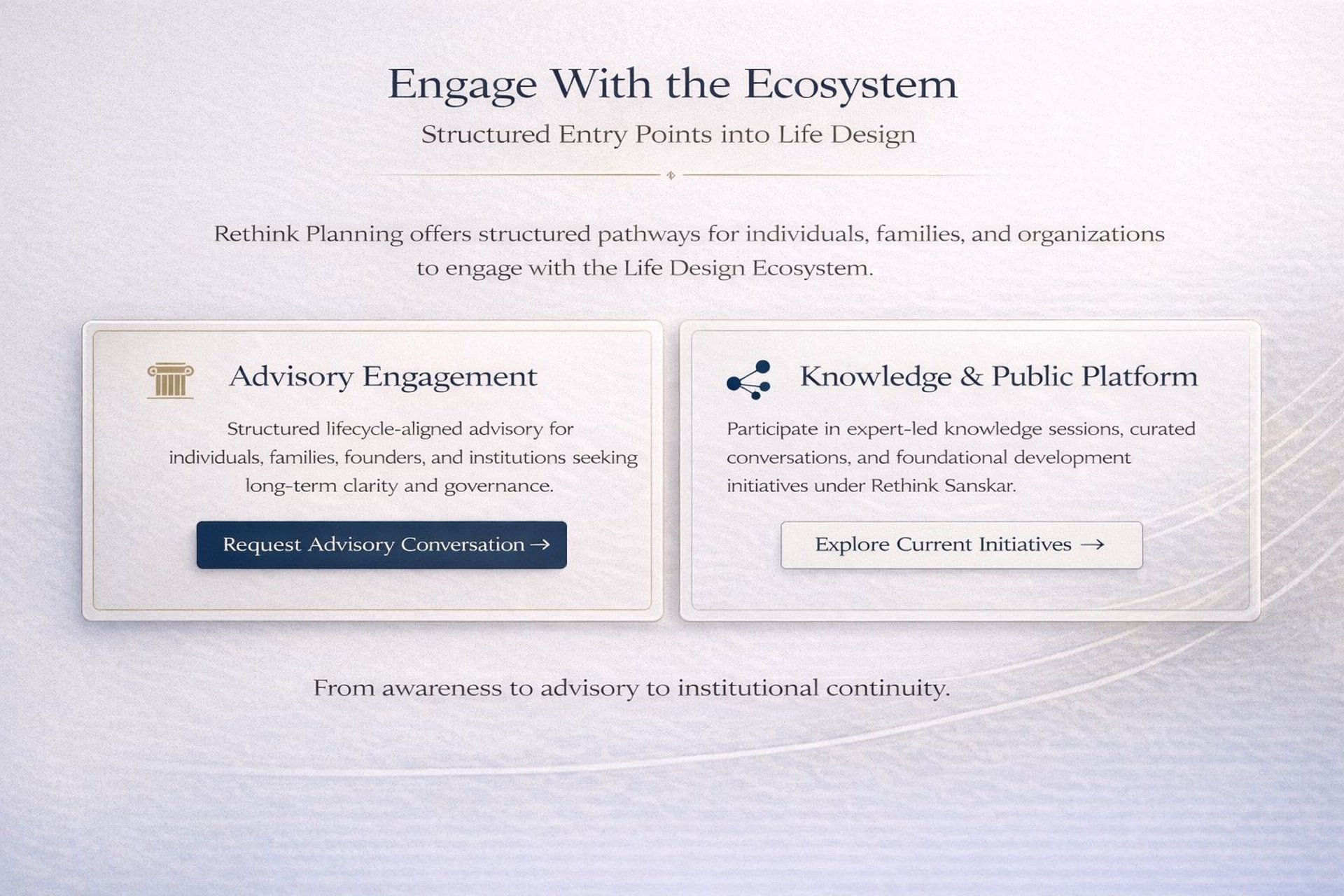 Rethink Planning is being built as a life-design ecosystem, anchored in trust, expertise, and cultural sensitivity.